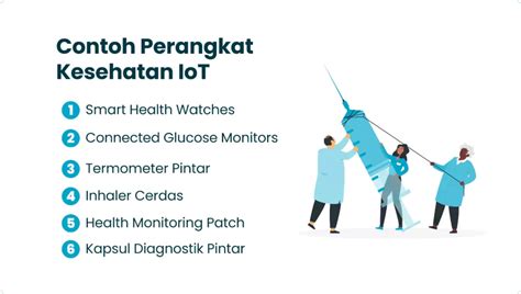 Kesehatan: IoT digunakan untuk memantau tanda-tanda vital pasien, serta untuk melacak obat-obatan dan peralatan medis.